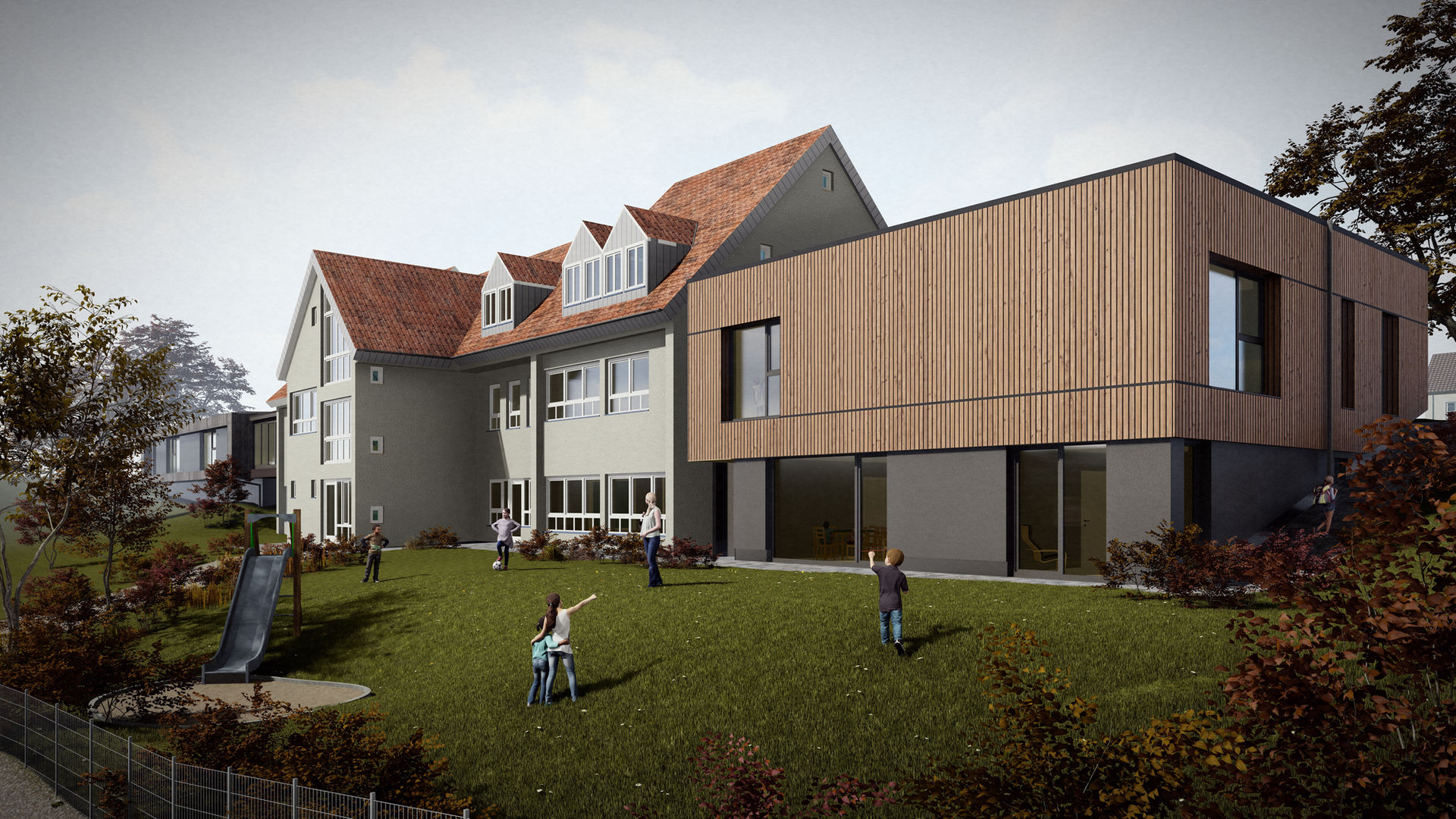 Mit Blick auf den wachsenden Bedarf an Betreuungsplätzen entsteht in Seinsheim ein zukunftsorientierter Entwurf zur Erweiterung des bestehenden Kinderhauses.